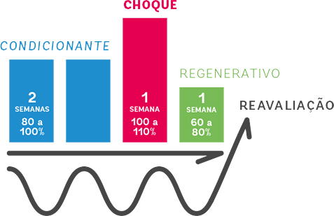Para evitar isso e promover uma readaptação constante, você possuirá uma alternância de intensidade por semana, representada por cores em seu aplicativo.